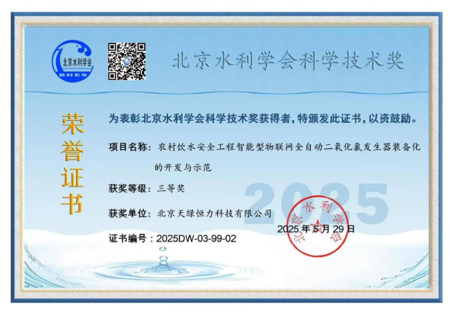 重视知识产权 热烈祝贺天绿科技荣获水利学会科学技术奖